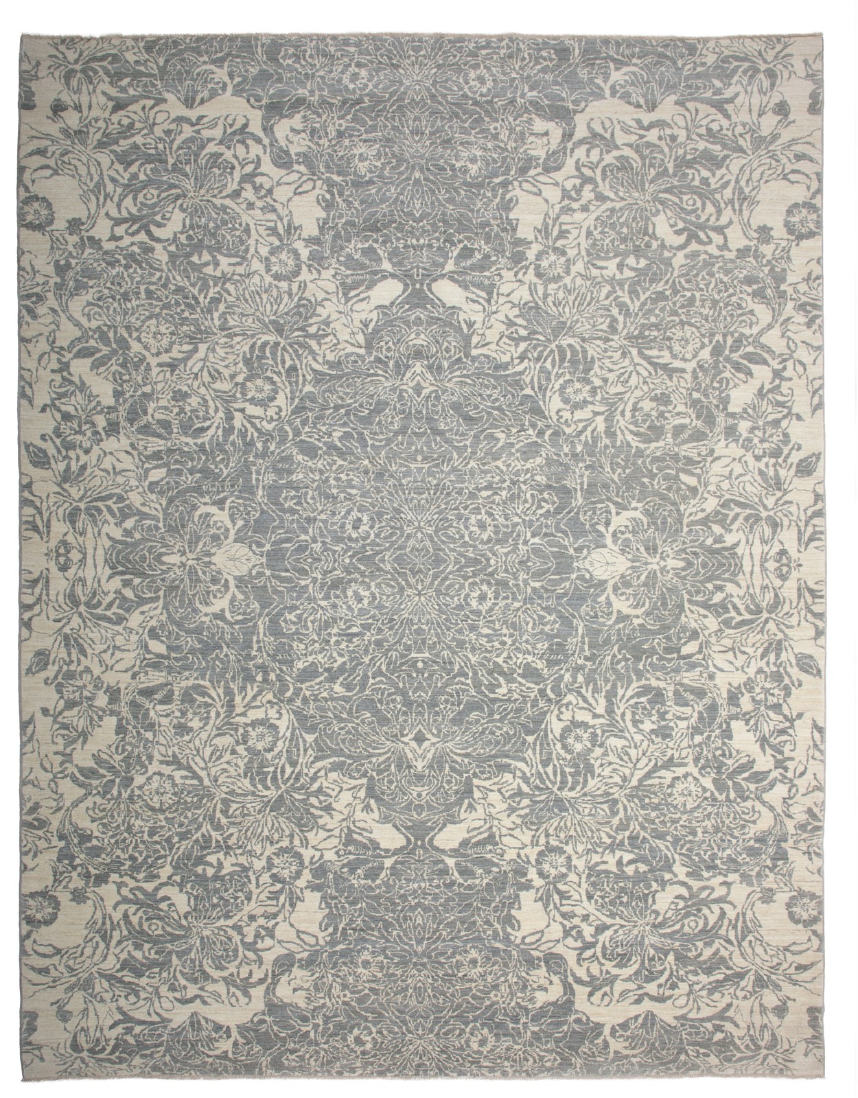 Details below are for the current example illustrated, which is a digital rendering. Most carpets may be woven in wool, silk, or a combination of both. Each carpet may also be ordered in custom sizes, colours, and washes at an additional cost. Please enquire for pricing.