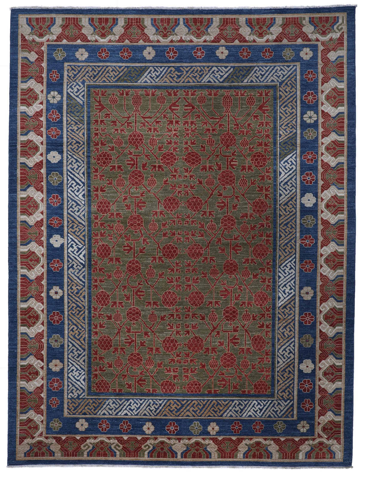 The Turquoise Mountain Khotan Collection features a range of Traditional designs with modern colour interpretation inspired by heritage Afghan rugs. Hand-knotted by talented weavers supported by Turquoise Mountain in Afghanistan, each rug is made to order.