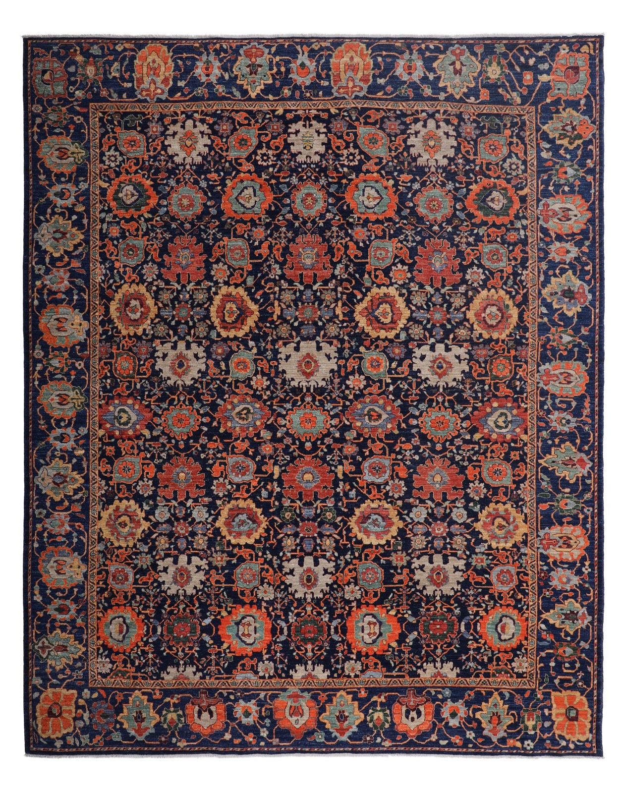 Details below are for the current example illustrated. Most carpets may be woven in wool, silk, or a combination of both. Each carpet may also be ordered in custom sizes, colours, and washes at an additional cost. Please enquire for pricing.