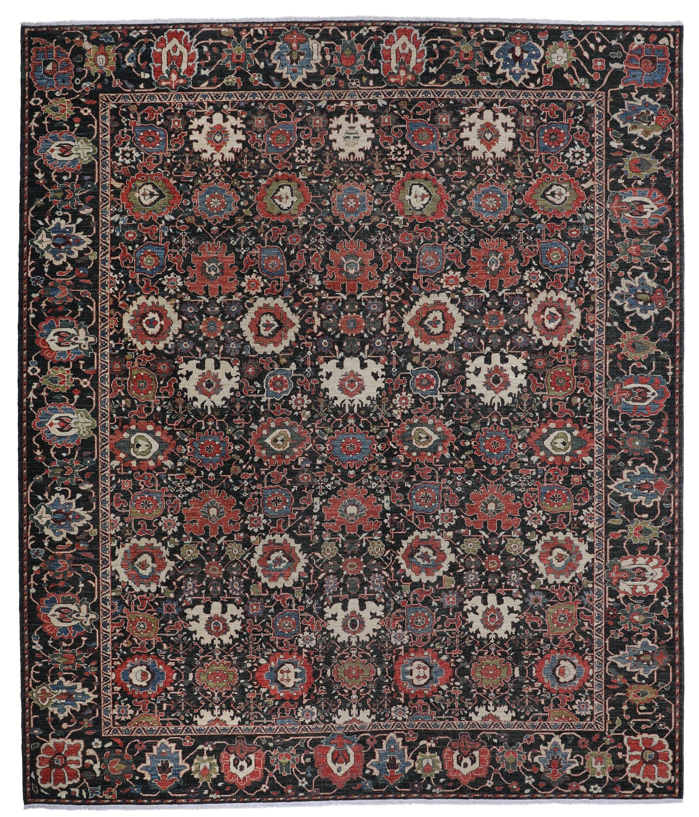 Details below are for the current example illustrated. Most carpets may be woven in wool, silk, or a combination of both. Each carpet may also be ordered in custom sizes, colours, and washes at an additional cost. Please enquire for pricing.