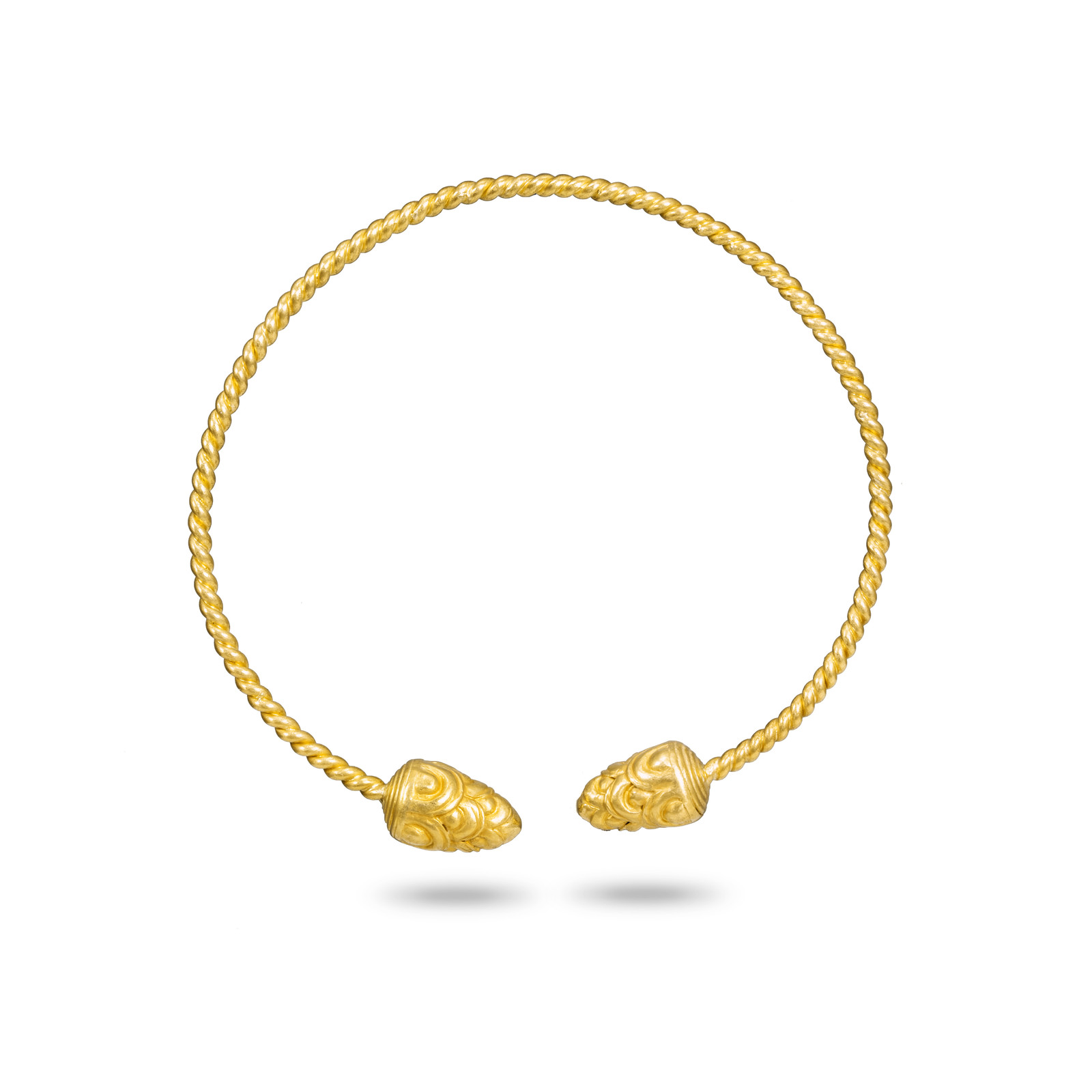 Gold beads have been a prominent feature of Myanmar jewellery for centuries. The beads in this collection take inspiration from the lotus bud, a common decorative motif found on Buddhist shrines that signifies purity and the path towards enlightenment.