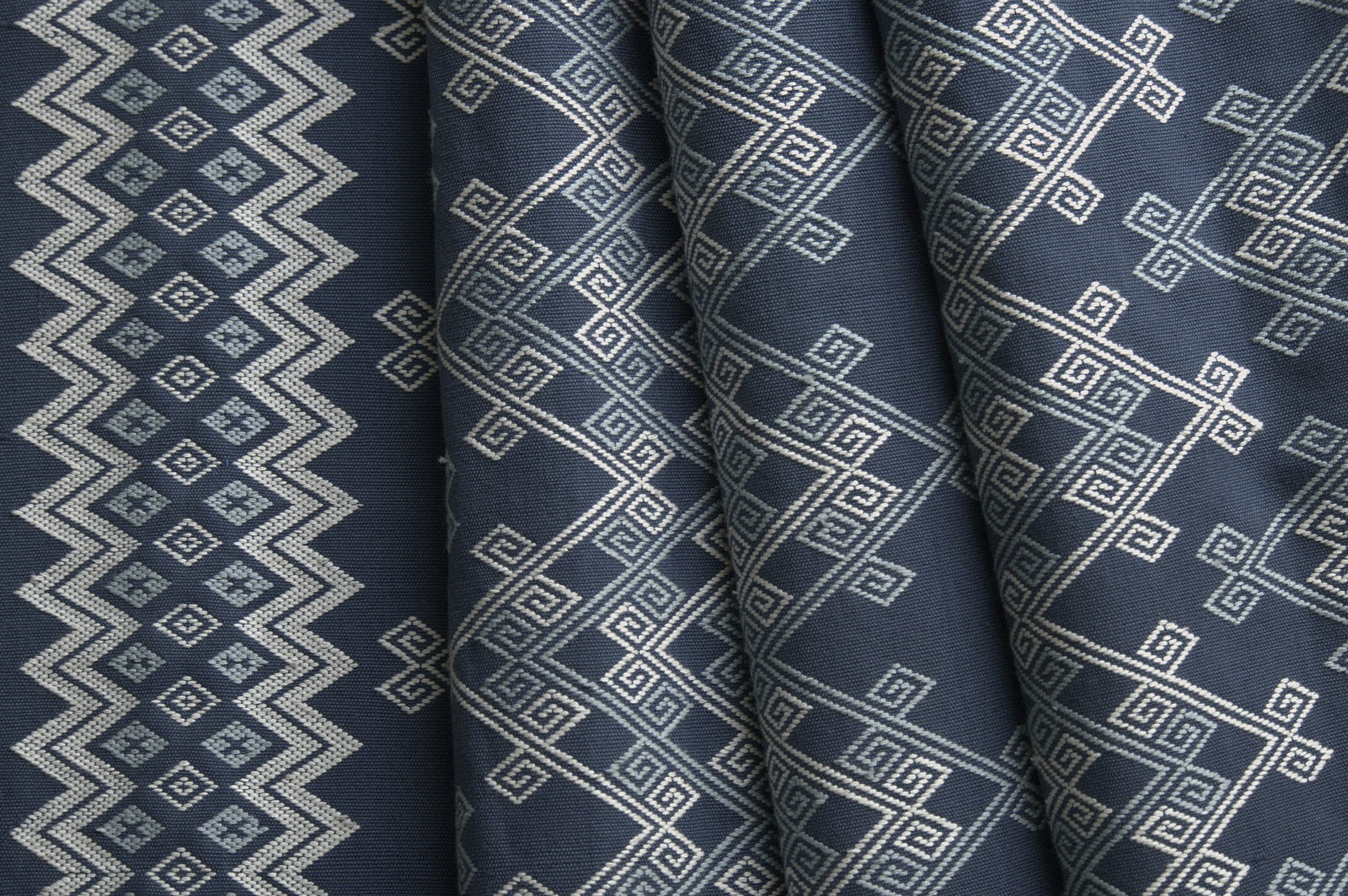 A handcrafted fabric created by master weavers in Myanmar. This unique design belongs to the Kachin, an ethnic minority group from the north of the country. The design is locally woven on a frame loom at Hka Hku camp, one of our supported workshops in Myitkyina, Kachin state.