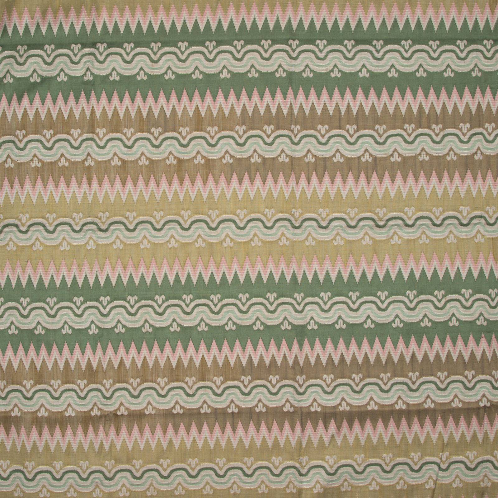 A handcrafted 100% silk fabric, created by master weavers in Myanmar. This design honours heritage motifs from the Burmese Acheik textile tradition, with pattern motifs dating back a thousand years. The fabric is meticulously woven on a village frame loom in Sagaing State. The weaving process uses 100 shuttles in an incredibly skillful process, with few artisans left able to create such intricate work. Turquoise Mountain is working to preserve and protect this artisan weaving skill, and celebrate the beautiful Acheik visual heritage.