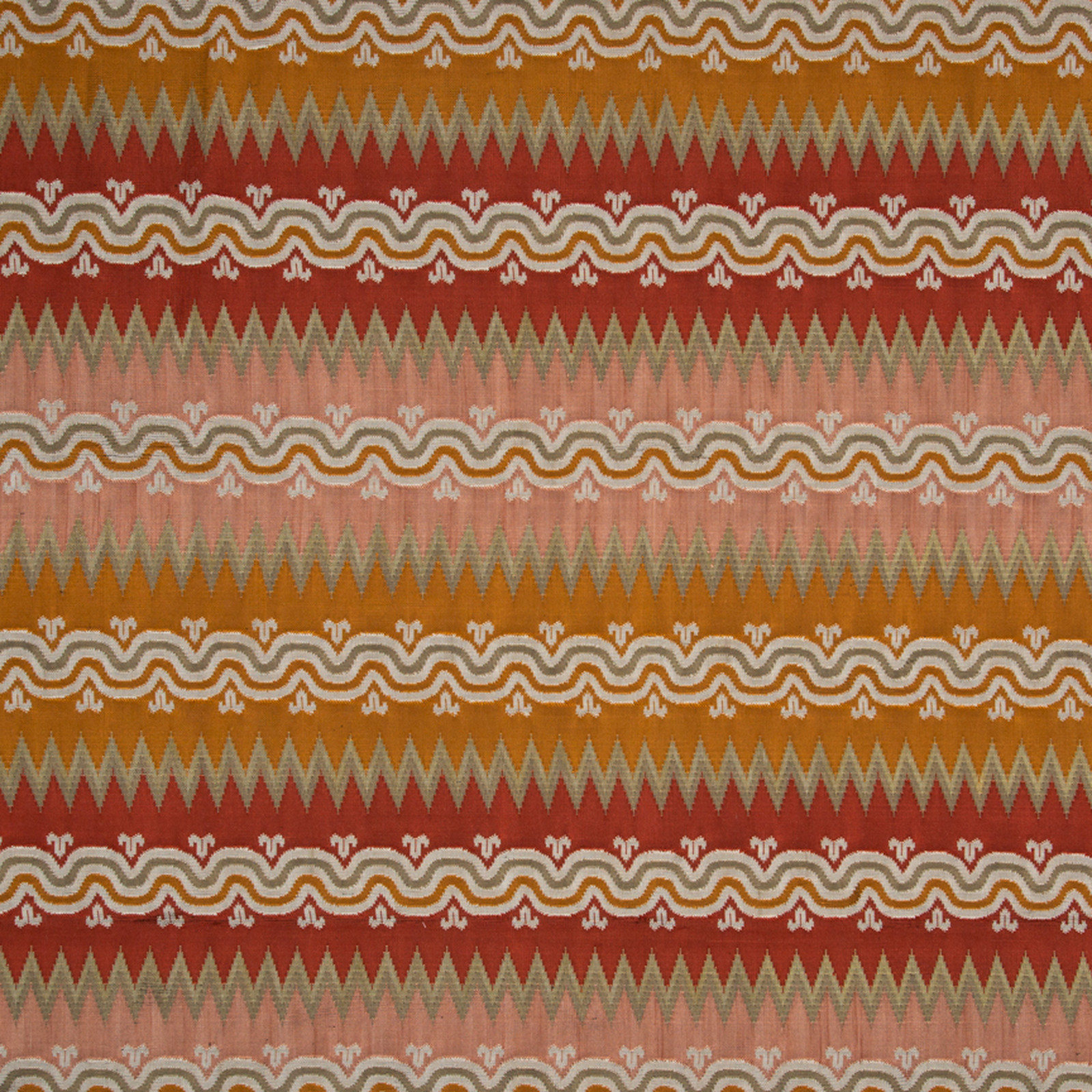 A handcrafted 100% silk fabric, created by master weavers in Myanmar. This design honours heritage motifs from the Burmese Acheik textile tradition, with pattern motifs dating back a thousand years. The fabric is meticulously woven on a village frame loom in Sagaing State. The weaving process uses 100 shuttles in an incredibly skillful process, with few artisans left able to create such intricate work. Turquoise Mountain is working to preserve and protect this artisan weaving skill, and celebrate the beautiful Acheik visual heritage.