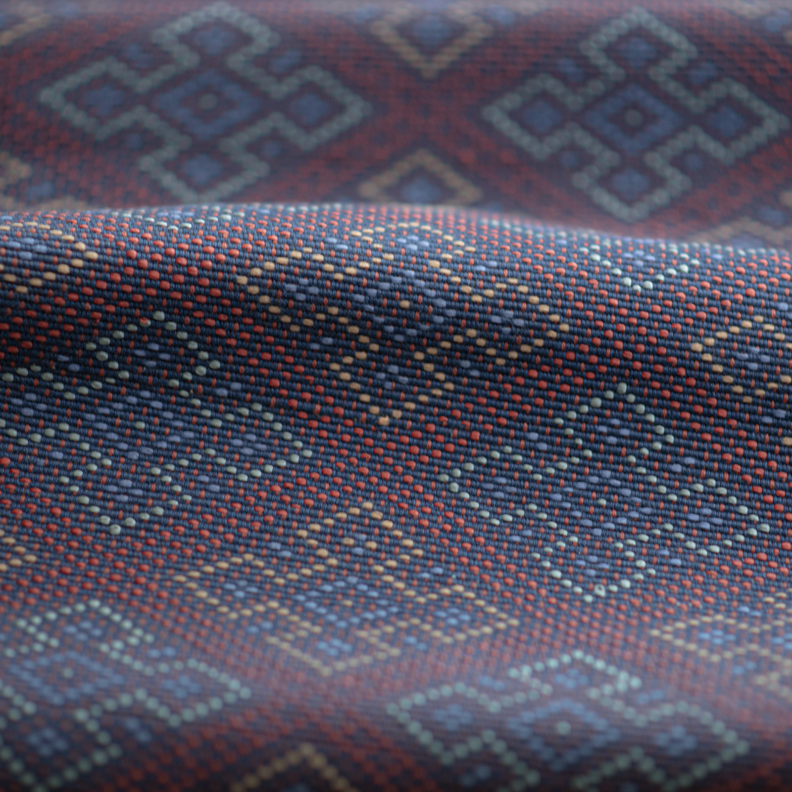 A handcrafted fabric created by master weavers in Myanmar. This unique design belongs to the Mro, an ethnic minority group from the west of the country, and is locally woven on a backstrap loom.