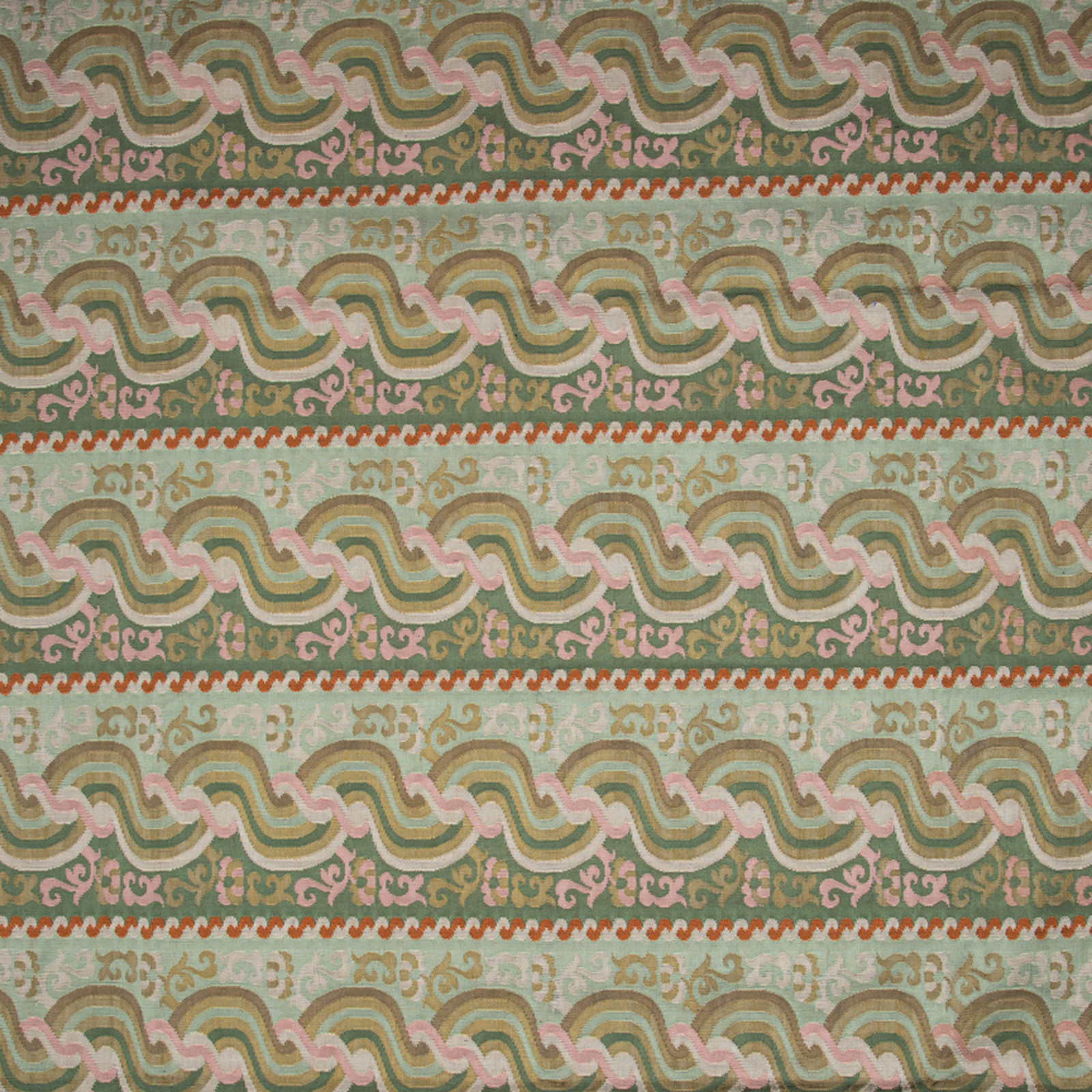 A handcrafted 100% silk fabric, created by master weavers in Myanmar. This design honours heritage motifs from the Burmese Acheik textile tradition, with pattern motifs dating back a thousand years. The fabric is meticulously woven on a village frame loom in Sagaing State. The weaving process uses 100 shuttles in an incredibly skillful process, with few artisans left able to create such intricate work. Turquoise Mountain is working to preserve and protect this artisan weaving skill, and celebrate the beautiful Acheik visual heritage.