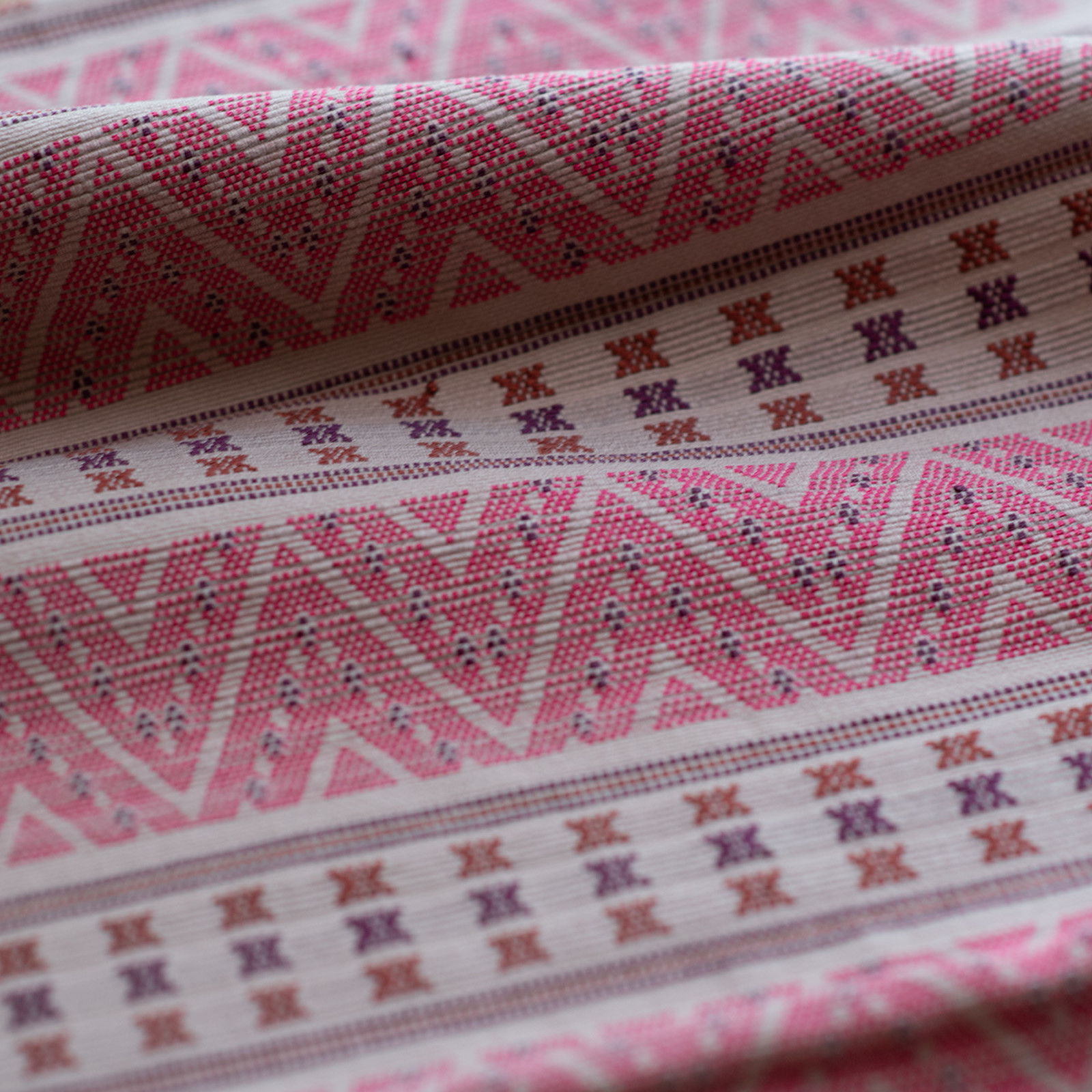 A handcrafted fabric created by master weavers in Myanmar. This unique design belongs to the Laytu Chin, an ethnic minority group from the west of the country, and is locally woven on a backstrap loom.